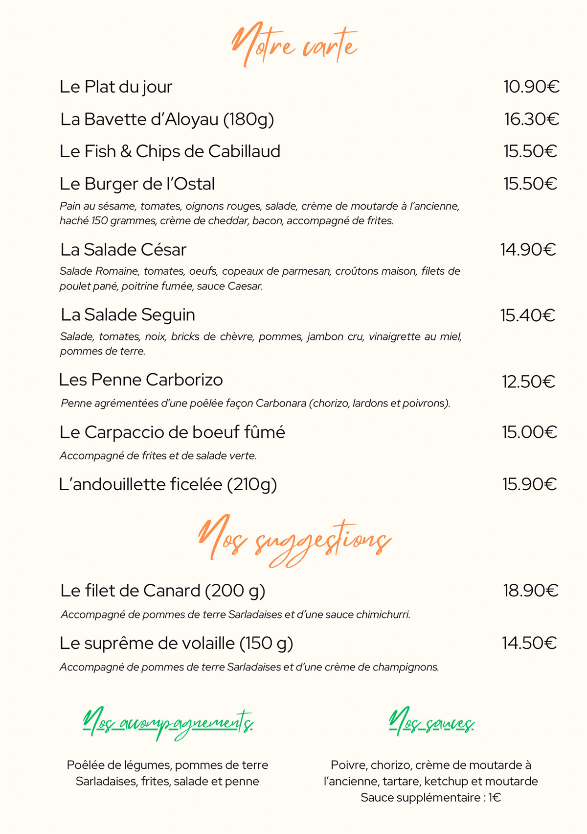 Nous sommes fiers de vous offrir des produits de qualité dans notre cuisine. Chaque ingrédient est soigneusement sélectionné pour garantir une expérience culinaire exceptionnelle. Notre carte est variée et adaptée à tous les goûts, et elle évolue au fil des saisons pour vous proposer des plats toujours renouvelés. Que vous soyez amateur de viande, de poissons ou de plats végétariens, vous trouverez chez nous de quoi satisfaire toutes vos envies culinaires.